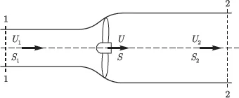 - Discharge of the medium moving in the considered current tube, S - the surface area imitating a turbine,