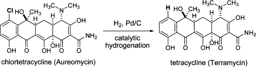 Later on, Lloyd Conover at Pfizer stunned his colleagues by preparing another powerful antibiotic chemically from chlortetracycline. Under carefully controlled catalytic hydrogenation conditions, Conover converted Lederleâs chlortetracycline to tetracycline. That was the first example of a semisynthetic compound with antibiotic activities.