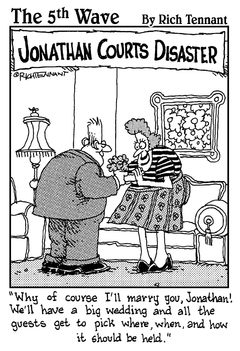Before you can get down to all those details, you need to understand the big picture. That’s what this chapter is all about. From choosing a date to creating a nothing-left-to-chance wedding-day schedule, we help you understand what needs to be done and give you the tools to get your wedding off to a great start.