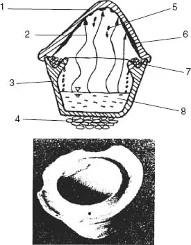 The history of the extraction of natural products dates back to Mesopotamian and Egyptian times, where production of perfumes or pharmaceutically-active oils and waxes was a major business. In archeological excavations 250 km south of Baghdad extraction pots (Figure 1.1) from about 3500 BC were found [1], made from a hard, sandy material presumably air-dried brick earth. It is supposed that in the circular channel was the solid feed, which was extracted by a Soxhlet-like procedure with water or oil. The solvent vapors were condensed at the cap, possibly cooled by wet rags. The condensate then did the leaching and was fed back through holes in the channel to the bottom.