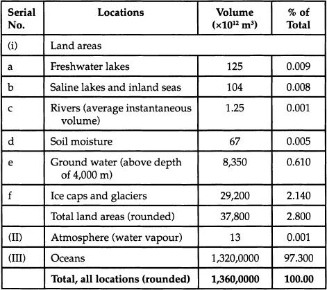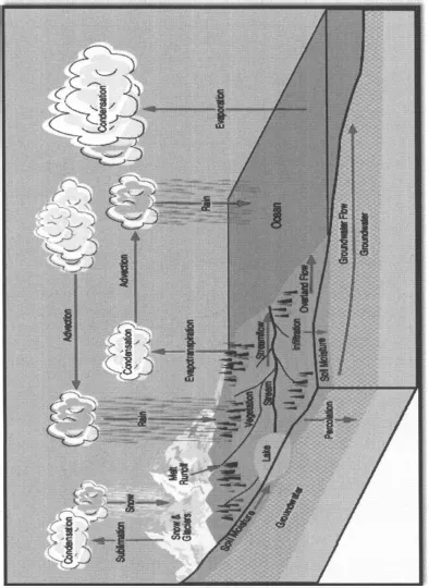 As shown in Table 1.1 [1] over 97% of the total water supply is contained in the oceans and other saline bodies of water, and is not readily available for most purposes. Out of the remaining 35%, a little over 2% is tied up in ice caps and glaciers and, along with atmospheric and soil moisture, is inaccessible. Thus, for their general livelihood and the support of their varied technical and agricultural activities, humans must depend upon the approximately 1.0% of remaining water found in fresh water lakes, rivers, and ground water supplies. Water is essential to life. Without it, the biosphere that exists on the surface of the earth would not be possible.