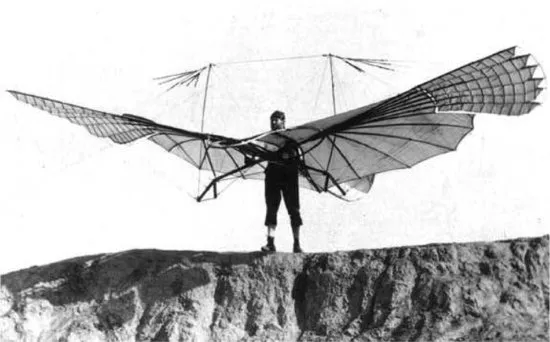 Otto Lilienthal was a nineteenth-century Prussian aviator who had a lifelong fascination with bird flight which led him into a professional career as a designer. He appeared on the aviation scene in 1891 by designing, building, and flying a series of gliders. Between 1891 and 1896 he completed nearly 2,000 flights in 16 different types of gliders, an example of which is shown in Figure 1.1. The wings of these gliders were described as resembling “the outstretched pinions of a soaring bird.” The bird species which captivated him most were storks, and the extent to which birds influenced Lilienthal is evidenced by two of the many books which he wrote on aviation: Our Teachers in Soaring Flight in 1897, and Birdflight as the Basis for Aviation: A Contribution toward a System of Aviation in 1889 (Lilienthal 1889). His observations on bird twist and camber distributions were influential in the development of his air-pressure tables and airfoil data. Interestingly, Lilienthal also made attempts at powered flight but chose to only study wings with orntithopteric wingtips. His insistence on the use of flapping wing tips in preference to a conventional propeller is an indication of the extent to which he was captivated by bird flight (Crouch 1989). Several early pioneers recognized the value in morphing as a control effect. Edson Fessenden Gallaudet, Professor of Physics at Yale, applied the concept of wing warping to a kite in 1898. While not entirely successful, this kite nonetheless embodied the basic structural concepts which would appear in aircraft designs much later (Crouch 1989). Independently, Orville and Wilbur Wright, correctly deduced that wing warping could provide lateral control. Wilbur remarked to Octave Chanute in 1900 that “My observation of the flight of buzzards leads me to believe that they regain their lateral balance, when partly overturned by a gust of wind, by a torsion of the tips of the wings. If the rear edge of the right wing tip is twisted upward and the left downward, the bird becomes an animated windmill and instantly begins to turn, a line from its head to its tail being the axis” (Wright 1900). This observation led to the design of the 1902 Wright Glider, which incorporated wing warping for lateral (roll) control (Figure 1.2). The warping was accomplished by wires attached to the pilot's belt, which were controlled by his shifting body position. Although this craft was flown by the Wrights as both a kite and a glider, it was during flights of the latter type that the need for a directional (yaw) control was first realized, and then solved with the creation of the rudder. Correctly recognizing that achieving harmony of control would greatly improve the control and usefulness of an aircraft, in October 1902 the Wrights developed an interconnection between warping of the wing and warping of the vertical tail. Thus the concept of what would later become the aileron-to-rudder interconnect or ARI was born. With the problems of longitudinal control, lateral control, directional control, and control harmony solved, the 1902 Wright Glider became essentially the world's first successful airplane (Crouch 1989). These developments paved the way for the success of the powered 1903 Wright Flyer a year later.