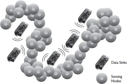 FIGURE 1.1 Networking structure of a distributed sensor network.