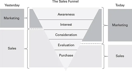 The traditional sales and marketing approach pushed these products or services to customers along this linear funnel and focused on lead generation and qualification, the bid or proposal, negotiation of terms and closing of the sale. Funnel metrics kept track of from where a sale would most likely come and when, enabling sales to remain on track for achieving or exceeding their targets within the specified timeframe set by the business (Figure 1.1).