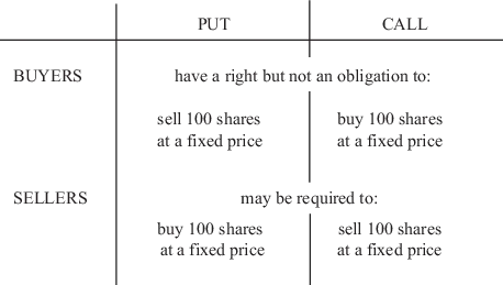 The rights and obligations of option buys and sellers are summarized in Figure 1.1.
