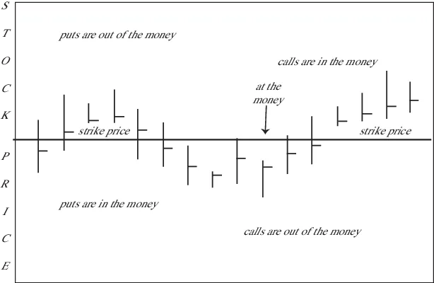 These relationships between strike of the option and current value of the underlying security is referred to as moneyness; this is summarized in Figure 1.2.