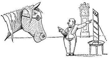 "WeiĂt du, Doktor", sagte das Pferd, "der Tierarzt hinter dem HĂŒgel weiĂ ĂŒberhaupt nichts. Er hat mich jetzt sechs lang Wochen behandelt â wegen Spat. Was ich brauche, ist eine Brille. Ich werde auf einem Auge blind. Es gibt keinen Grund, warum Pferde keine Brillen tragen sollten, genau wie Menschen. Aber dieser dumme Mann hinter dem HĂŒgel sah mir nicht einmal in die Augen. Er gab mir immer wieder groĂe Pillen. Ich versuchte, es ihm zu sagen, aber er konnte kein Wort Pferdesprache verstehen. Was ich brauche, ist eine Brille."