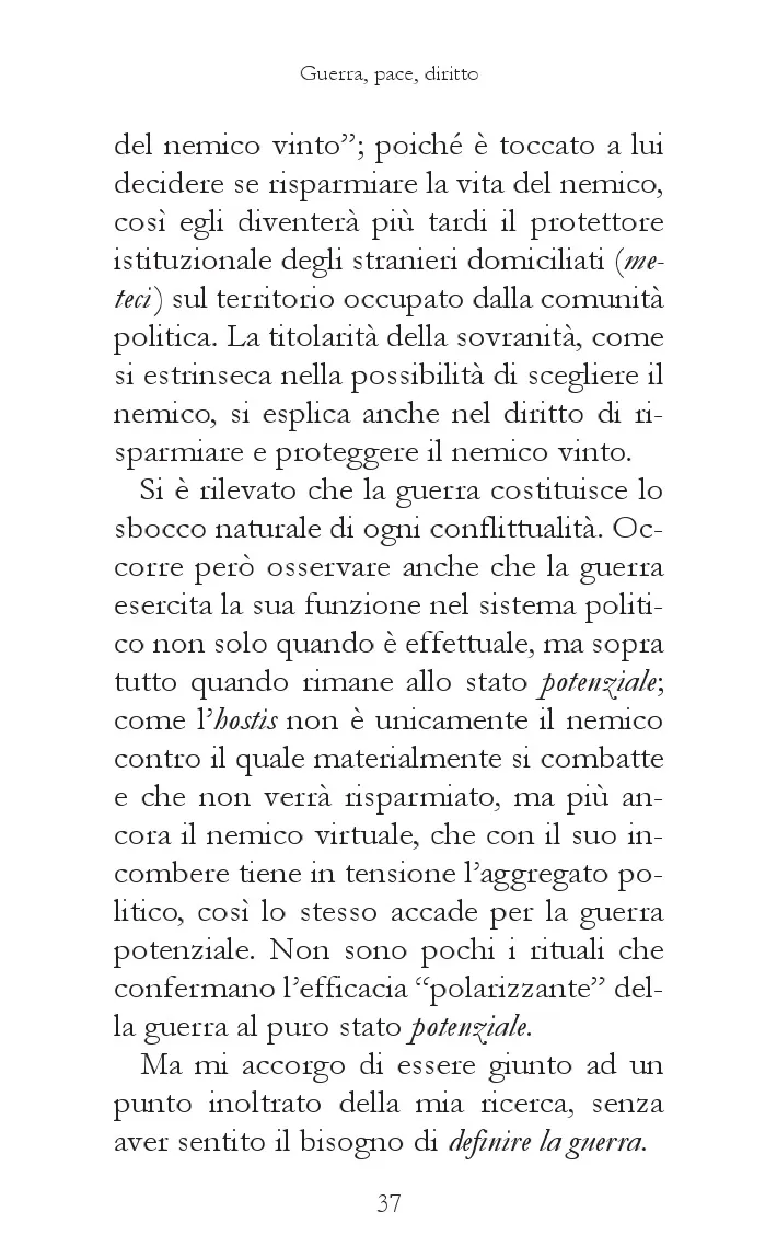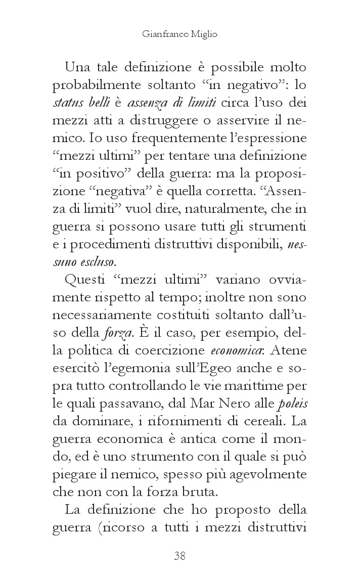 C'è una regolarità della guerra, intesa come «assenza di limiti circa l'uso dei mezzi atti a distruggere o asservire il nemico»? Un interrogativo che guida Gianfranco Miglio – in questo testo dove emerge la sua lezione di maestro del realismo politico – nella ricostruzione delle forme in cui la guerra è stata pensata e praticata: da quella civile allo scontro tra nazioni e Stati. Conflitti che, dopo il tempo della distruzione, hanno messo capo a nuove forme di vita politica. Una prospettiva, nota Cacciari nel suo saggio, che sembra essere venuta meno dopo la fine della «guerra fredda»: la globalizzazione, le migrazioni e il terrorismo di matrice religiosa aprono un orizzonte ove la guerra appare «senza fine» perché sono assenti soggetti in grado di trarre da essa una sintesi politica, un modo di convivenza segnato dalla pace.