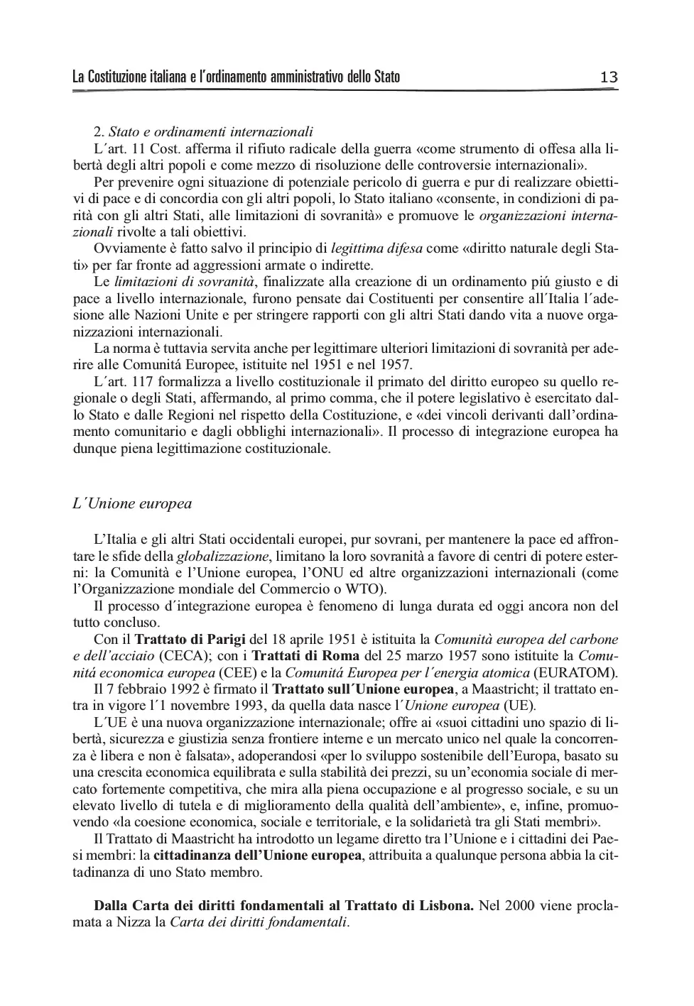 - la Costituzione italiana e l'ordinamento amministrativo dello Stato;