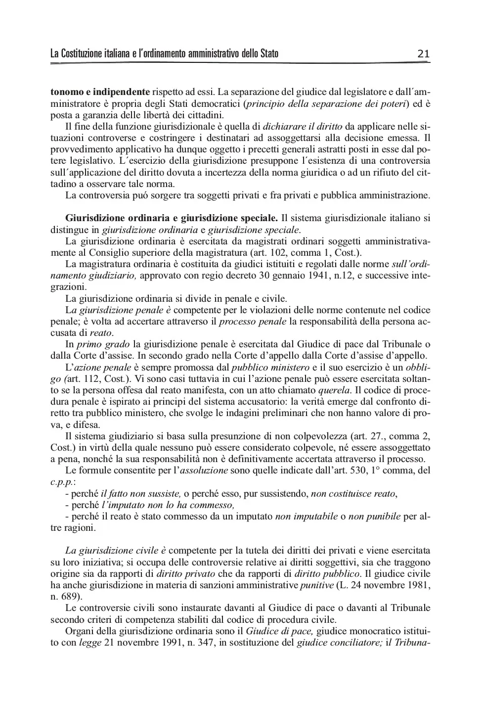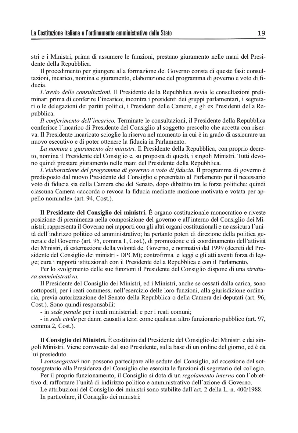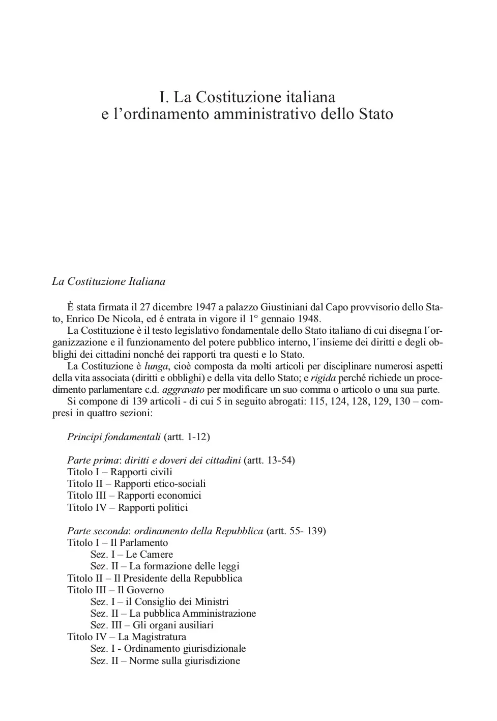 - I - La Costituzione italiana e l'ordinamento amministrativo dello Stato