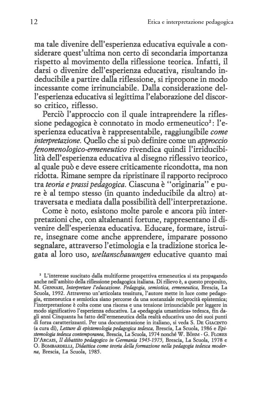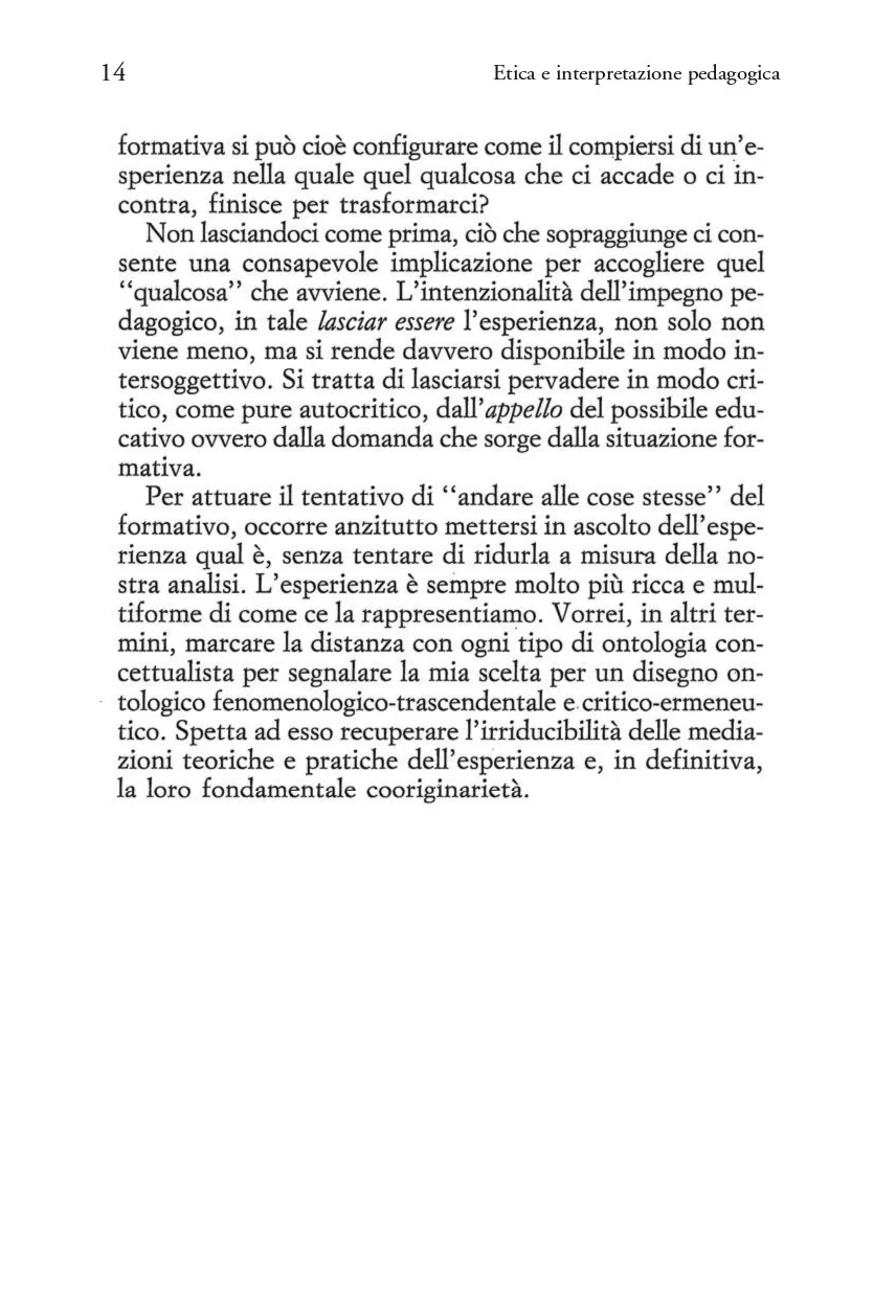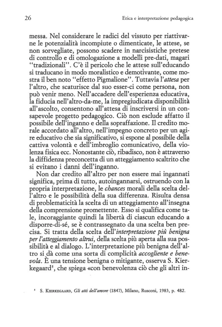 Etica e interpretazione pedagogica