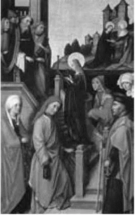 2. Hans Holbein il vecchio, La Vergine condotta al tempio (particolare di un polittico), 1493. Augusta, Duomo