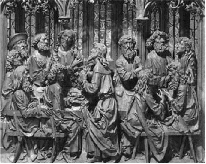 8. Tilman Riemenschneider, Ultima Cena (particolare di un polittico), ca. 1502. Rothenburg, Sankt Jacobskirche
