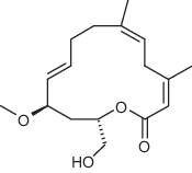 Type: Linear polyketides dibranched. C17H26O4 Oil, [α]D22 = +156° (c = 0.03, MeOH). Source: Cyanobacterium Lyngbya sp. Pharm: Cytotoxic (HeLa-S3 cells, IC50 = 42 μg/mL, weak). Ref: A. Iwasaki, et al, Tet. Lett., 2010, 51, 959