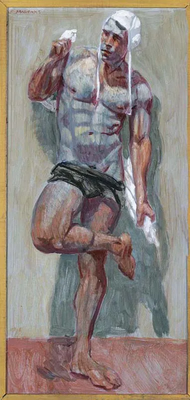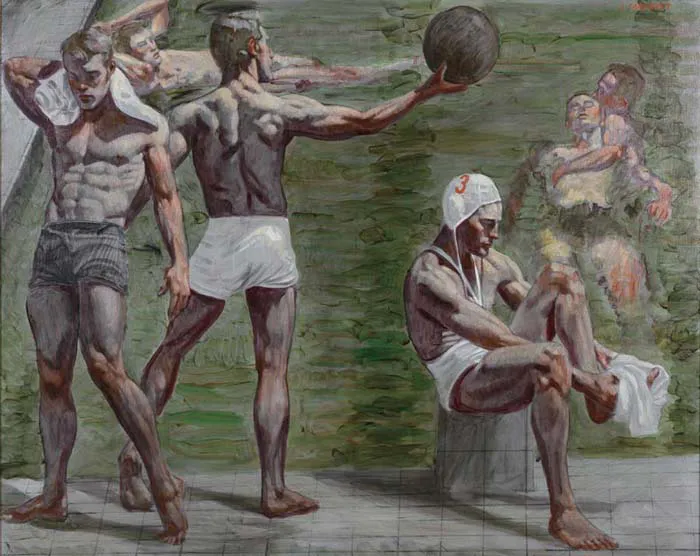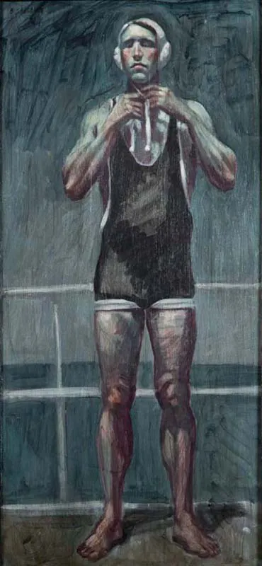 Study for Captain John Barnes after Water Polo, 1928; oil on board; 23 × 10 1/2 inches