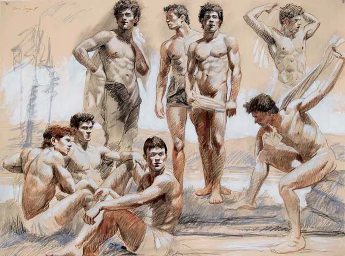 Study for Swimmers, date unknown; charcoal and gouache on paper; 46 × 60 inches