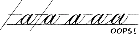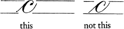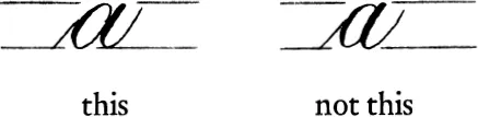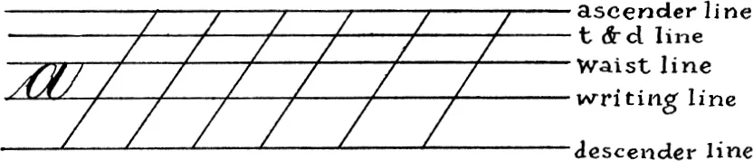 Though it won’t be presented as a separate stroke, you should be aware that all letters-alone, at the beginning of words or anywhere in a word—begin with a lead-in hairline. If it’s within a word, that hairline is the finish of the last stroke of the preceding letter. If it’s alone or beginning a word, you start the letter by pushing a hairline from the writing line up as though it were the finish of a letter. You will see how this is done as you go through the construction of each letter.