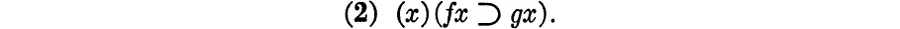 An examination of these two deductions makes it clear that their validity hinges on more than just the terms “~”, “⊃”, etc. The terms “any”, “every”, “there is”, “some” also play a role, and are terms which occur as parts of formal statement-forms, i.e., they are themselves formal terms. In fact “every” and “some” were used in Part I, but not in an explicit way. Saying that “q. ⊃ .p ⊃ q” has universal validity and that “~q ⊃ · p ⊃ q” does not are other ways of saying, without explicitly heralding the terms “every” and “some”, that every substitution on “p” and “q” in “q · ⊃ · p ⊃ q” yields a truth, and that some substitutions on “~q ⊃ · p ⊃ q” do not yield truths. But there is an important difference between the use of these terms in connection with the statement-forms explicated in Part I and their use in the above two examples. In “for every p, q, q · ⊃ .p ⊃ q” and in “for some p, q, ~q · p ⊃ q”, “every” and “some” operate on terms within statement-forms which are themselves statement-forms, whereas in the above two examples the terms within the statement-forms on which they operate are not themselves statement-forms. Of these terms no mention either explicit or implicit has yet been made. How the operators “every”, “any”, “some”, called quantifiers, function remains to be explained.