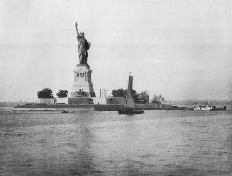 This shimmering view of the lady in the harbor was issued inquantity by Artotype, Bierstadt’s name for the multiple-printphotoprocess he used. Edward Bierstadt, who was a printer aswell as a photographer, was the brother of the celebrated landscape artist Albert Bierstadt. This print, presented to the Society in 1890, probably records the appearance of the figure shortly after it was dedicated in 1886.