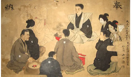 Figure 1.2 Votive image (mukasari ema): scene of a post-mortem marriage ceremony for a man who died young. Courtesy of Jakushōji, Tendō City, Yamagata Prefecture. Photograph by Satō Hiroo.