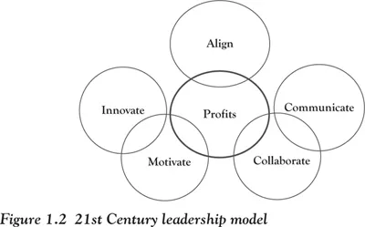 The manner in which behaviors are organized into a system of leadership develops a common culture when used organization wide. That system consists of the five circles shown in Figure 1.2, illustrating Alignment, Communication, Collaboration, Motivation, and Innovation. This book will review each element of the system and accompanying behaviors integral for your organization becoming the best in your marketplace. Figure 1.2 illustrates how you can lead your organization to think out of the box.