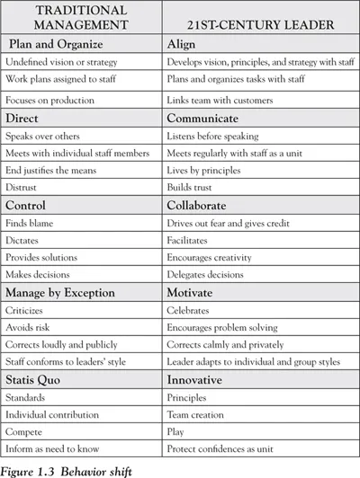 Figure 1.3 illustrates behavior changes required to shift from a traditional culture to a collaborative and innovative culture.