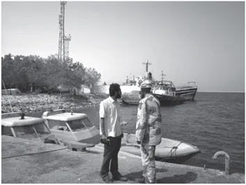 FIGURE 2. Author with Somaliland coastguard in Berbera Port, 2011. Photo by Hassan Ibrahim.