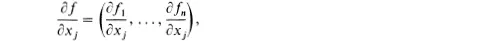 We will say that f is continuous in x if each fi is continuous in x. Furthermore, we define the vector of partial derivatives as