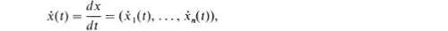 Given the n-dimensional vector x(t) = (x1(t), . . . , xn(t)), where t is a real variable and each xi(t) is real-valued, we say x(t) is continuous at t = t0 if each xi(t) is continuous at t = t0, and it is differentiable if each xi(t) is differentiable. We then may express the derivative vector as