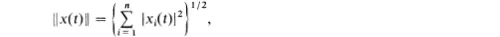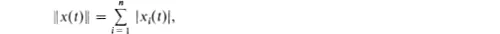 and for each t this is a mapping of x(t) into the nonnegative real numbers. It has the properties (i) ||x(t)|| = 0 if and only if x(t) = 0, that is, each xi(t) is zero; (ii) ||kx(t)|| = ||k|||x(t)|| for any real or complex scalar k; and (iii) ||x(t) + y(t)|| ≤ ||x(t)|| + ||y(t)||. The above norm has certain computational advantages over the usual Euclidean norm,