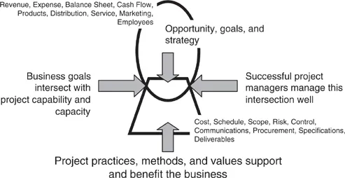Said another way, projects are not valuable in and of themselves; they only acquire value from the role they play in exploiting opportunity. This idea forms the first of five concepts in managing projects for value: A project’s value is derived from the value obtained by reaching goals (Figure 1-2).