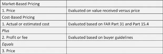 In accordance with FAR Part 15, cost-based pricing is a structured pricing approach that is based on FAR-determined cost elements. Cost elements are the components of an estimated cost and consist of direct labor (Chapter 2), materials and subcontracts (Chapter 3), indirect costs (Chapter 4), other direct costs (Chapter 5), and facilities capital cost of money (Chapter 5). Chapter 7 addresses the topic of profit or fee.