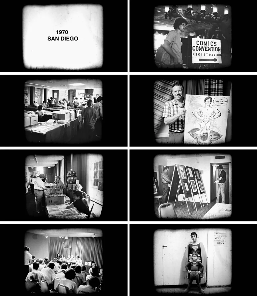 Morgan Spurlockâs 2011 documentary, Comic-Con Episode IV: A Fanâs Hope, begins with a visual primer in Comic-Con history, signaled by the click and whirl of an old slide projector. A mock slide show titled â1970 San Diegoâ flips through a series of black and white photographs: a handmade, stenciled sign reading, âComics Convention Registrationâ; shoppers browsing in the dealersâ room; artist Russ Manning, posing with his sketch of Tarzan; a collector rifling through a box of comics; aficionados enjoying an art display; a table of six panelists addressing a room full of attendees; and comic artist Don Newton and his son posing in matching Superman costumes (figure 1.1). Accompanying the slide show is an audio recording of a Channel 39 news segment with the eventâs founder, Shel Dorf.1