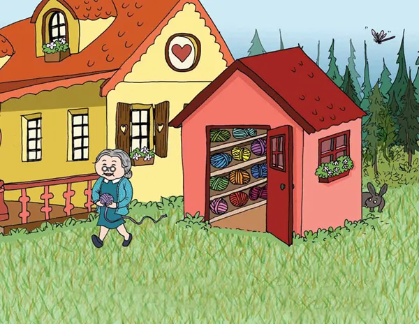 Old Mrs. Johnson lives alone in the forest and loves to knit sweaters and mittens for her grandchildren in the city. One day, when returning from a visit to the city, her solitude comes to an end when her mischievous forest neighbours reveal themselves in a delightfully colourful fashion. Who took her yarn, and what have they done with it? The colourful mystery is solved when the birds, rabbits, snakes, trees and other dwellers of Mrs. Johnson's forest neighbourhood are seen playing with the yarn. Suddenly, the forest doesn't seem so lonely anymore!