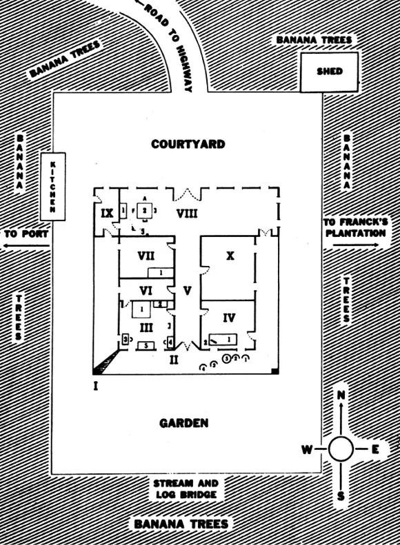 On all sides of the garden, as far as the borders of the plantation, stretches the green mass of the banana trees.