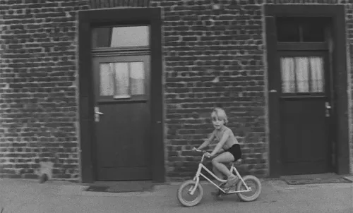 A man is driving a car. A bit later, he is riding in a taxi. Still later, he is on a boat, this time accompanied by a young girl. After some bus and monorail trips, they end up in a different car that he again drives. Throughout these sequences and others from Alice in the Cities, the camera intermittently turns from the characters to shoot out of the vehicles’ windows or at rest stops. It records passing landscapes in South Carolina, New Jersey, New York City, Amsterdam, Wuppertal, Essen, Oberhausen, Gelsenkirchen, and other places along this movie’s road. And it responsively focuses on the smallest, most ordinary incidents chanced upon along the way: a blooming tree waves in the wind; cows graze in a pasture in front of a factory; a woman lifts a veil over her mouth; a boy bicycles on the sidewalk along a row of houses (Figure 1.1). The sheer amount of time and attention that the film devotes to the life rustling around its travelers is striking, particularly compared to most fictional films.