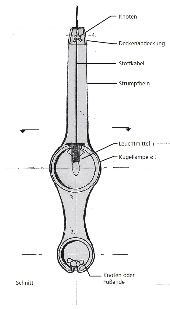 Die ausgewählten Kugelleuchten sollten in die Beine der Strumpfhose passen. Die Strumpfhose soll gespannt sein und nicht zu locker, sonst rutschen die Kugeln hindurch.