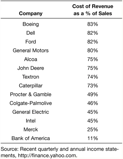 A major item that affects a firmâs likelihood of endorsing strategic supply management is the percent of revenue that passes through directly to suppliers. Take a moment and look at Table 1.2. On the income statement of publicly traded companies is a seemingly innocent line item called by various namesâcost of goods sold, cost of revenue, or cost of sales. Whatever its title, this account includes all the costs a company incurs directly to produce its products or services, including material costs to suppliers.