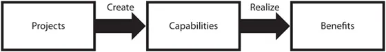 As Figure 1.1 demonstrates, the realization of benefits is dependent upon the creation of capabilities, which are often themselves realized via projects. Those capabilities, if successfully embedded in the organization via program and organizational change management, create the relevant benefits of interest to the organization. A further extension of this diagram might describe where the definition of these planned benefits originates, a topic to be discussed separately.