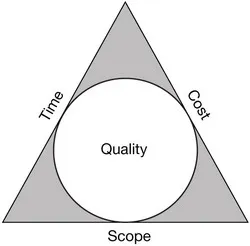 There is an old saying, āYou can have it quick, cheap, or done right. Pick any two.ā Oh, by the way, do not forget we want quality, too. Every project, regardless of size, is impacted and influenced by three constraints that are closely linked: scope, time, and cost. Scope is the work that will or will not be performed to deliver a specific product or service; time is how long the project will take; and cost refers to the expenses for resources such as staff salaries, equipment, materials, vendors, and consultants. Although different methodologies and authors use different constraint labels, the three constraints are known as the triple constraints. The triple constraints also are referred to as the project triangle (Figure 1.1). The three constraints tie directly to delivering a specific product or service within an agreed upon timeframe and budget.