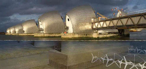Figure 1.1 Visualisation of tidal turbines on the Thames Barrier. The Not Quite Yet, SPACE, London, 25 Januaryâ29 February 2008 (© Loraine Leeson).
