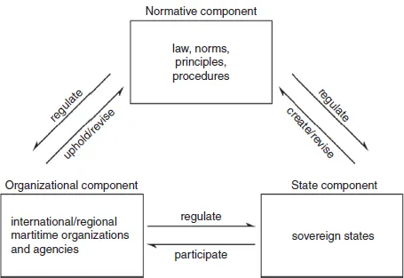Since the PRC officially joined the LOS regime during the preparatory stage of the third United Nations Conference on the Law of the Sea (UNCLOS III) in 1971, discussion of the LOS regime in this book is mainly focused on the period after Chinaâs entry, drawing on the pre-entry period when necessary. What does the LOS regime look like in the post-China-entry period? Drawing on the neoliberal and constructivist theories of international regimes reviewed earlier, this book defines the LOS regime as an evolving entity consisting of three basic elements. Figure 1.1 is an illustration of the LOS regime.