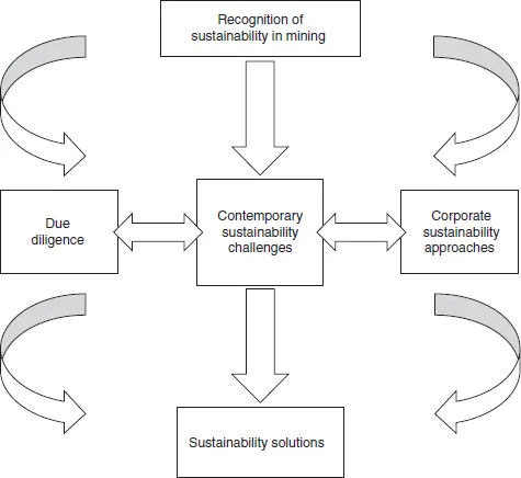 This book consists of thirteen chapters and five sections. Following this introductory section and chapter, the remaining five parts represent each element of the framework: recognition of the importance of sustainability; due diligence mechanisms for sustainability; contemporary sustainability challenges in the mining industry; corporate mining approaches that address sustainability; and sustainability solutions.