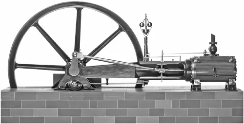 Models were especially important in this area because of the tradition of model-making in the engineering industries. Miniature versions of their products were often generated by firms for use as part of the design process, as apprentice pieces and as illustrations to prospective clients. The Museum acquired many such models from Scottish engineering companies, and from 1868 it began to craft its own. The Museum workshop emulated the processes by which the full-size counterparts had been made, taking great pride in fidelity to original materials and processes. However, this verisimilitude was at best only ever partial â for example, the stone or brickwork supports to machinery were invariably represented in papered wood, as displayed in the 1:6 scale âCorliss Engineâ built in 1876 (Figure 1.1). Named for the American engineer George Henry Corliss and featuring innovative valve gear, this type of stationary engine was used in factories and especially in textile mills. The model, with its gleaming steel drive rods, brass fittings and wood-clad steam box, was made to scale from plans supplied by Douglas and Grant, a major manufacturer of this type of engine.