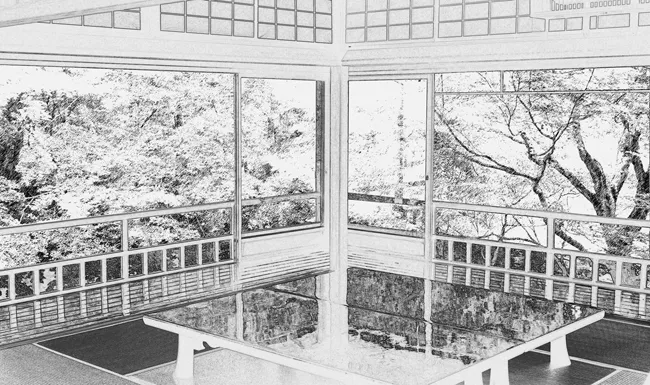 Take a traditional house. Its palely coloured walls are made with softening paper (shōji), dried clay and richly grained woods that absorb and gather a light so indirect as to be stripped of its luminosity. The floors are strewn with mats of woven straw (tatami) whose gently astringent smell and firm yield underfoot announce themselves as equals to any human presence. The alcove (tokonoma) holds a vase, stem and scroll whose pale union yields utterly to their paler burnished surrounds. The eating areas are alive with pots glazed in mannered imperfection stacked neatly next to lacquerware bowls painted in liquid darkness that comes to life in the occasional flicker of an oil lamp. And the eaves cast shadows over a balcony as a peony made heavy by late spring rain might hang over neatly tended grass.