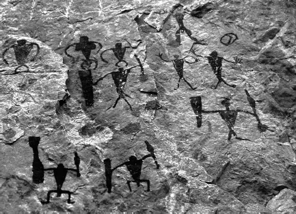 Figure 1.1An image of martial dance in a primitive rock painting in Cangyuan County, Yunnan Province.