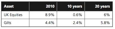 At the time of publication of this book, the argument for equities looks somewhat weaker than usual. The highly respected 2011 Barclays Equity-Gilt study (now in its 56th year of publication) shows that UK Government bonds have outperformed equities over a ten year period and are virtually level-pegging over a twenty-year period.