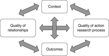 - Quality of relationships: The quality of relationships between members of the system and researchers is paramount and evolves during the action research process. Hence the relationships need to be designed for and managed through shared goals, collaborative action, trust building, developing a common language, shared reflection and so on.
