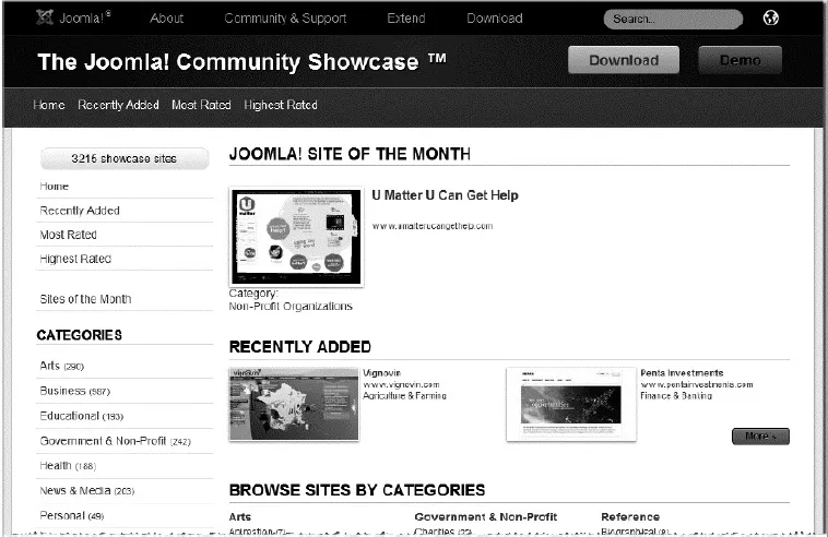 Continuare a riportare tutta una serie di numeri a conferma della validità del progetto Joomla! potrebbe anche avere poco valore, visto il continuo lievitare delle risorse rese disponibili. Un’idea migliore la può dare la pagina che riporta gli indirizzi di numerosi siti realizzati in tutto il mondo, ordinatamente separati per tipologia, a questo indirizzo: