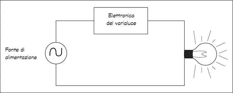 Figura 1.1 I componenti elettronici del varialuce di questo circuito controllano il flusso della corrente elettrica diretta verso la lampadina.